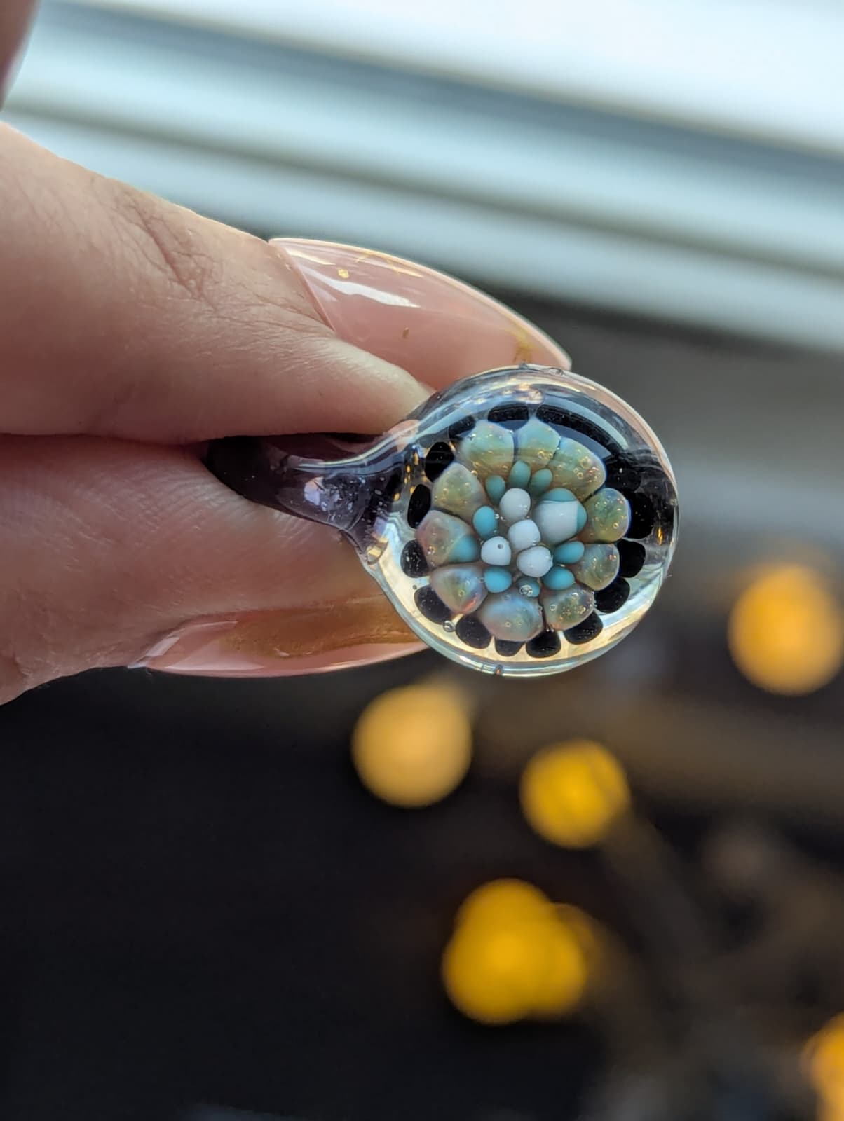 Create a delicate hand-blown pendant. This elegant piece captures the beauty of nature in molten glass and makes a stunning keepsake or gift.